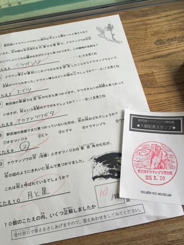 謎の旅『ナウマンゾウ祭り』~後編~ 日常 2015年03月24日 こんばんは、深田あさです。 ~前回までのあらすじ~ 人っ子一人いない「ナウマンゾウ博物館」に戦いを挑んだ一行。 一体何が起ころうとしているのか!!!? はい。 まず初めにナウマンゾウクイズの紙を発見。 展示物の中に答えがあるはずなので、探しながらまわってみましょーう! 発掘現場のモデル図。 2年に1度野尻湖の調査をするそうです。 今年は3/27(金)~30(月)。 今回は発掘じゃなくて、地質調査なんですがちょっとときめくよねー(*´ェ`*) 楽しそうDANE! 野尻湖友の会というものがあって 参考URL→http://www.avis.ne.jp/~nojiriko/hakkutu.html ちょっと惹かれています。 規約は色々あるんですが、一般の人も専門家と一緒に発掘に参加できるみたいです。 ナウマンゾウとヒトの大きさ比較をしてみたよ! 他に誰もいないから安心して暴れてました。 USJのジョーズと勘違いしてますね。 歯の部分が本物の化石なんです。 ハートにグっときたイラスト。 暑そうなナウマンゾウがちょっと脱いでるのがいい。 展示物で勉強しました。10点満点! ナウマンゾウのナウマンって、ドイツの地質学者さんなんですって。 だからノリノリなちゃらい感じで 「いやーナウマン発掘に興味あってさー」 とか言っちゃうとドイツの学者さんが発見されちゃうので、ちゃんとゾウって付けてあげてね! 書ききれない位楽しかったです!! 大きさは決して広くはないのですが。 疲れやすい私にはちょうどいいし、博物館の人たちは親切。 展示物の説明がしっかりあって、ナウマンゾウや野尻湖周辺の自然環境に興味がもてます。 夏場は結構賑わうんじゃないかな。 冬はこの近辺の博物館は休館期間をとっている所が多いのですが それもそのはず。 松本市あたりは全然雪が積もってなかったのに。 山積みの雪が一面に残って驚きつつ、次の場所へ移動をし始めた一行。 だがしかし。 霧で何も見えない。 人通りも全然なく、私はまた違った意味で恐怖を感じ始めていました・・・。 その理由は・・・ ↑信濃町 ↑羽生蛇村 SIRENってゲームの羽生蛇村っぽくて震えてた。 有名なホラーゲームなんですけどね。 話はめっちゃ気になるのに怖くて自分じゃできなかった思い出があります。 やった事ある人からしたら、私のこの時の状況を理解してもらえるはず。 どうあがいても、絶望。 この深い霧の中一行が目指す場所とは!? そしてお腹が減って機嫌が悪くなってきた深田を待ちうけるものとは!!! 明日へつづく。 ★深田あさ★ [1回] http://asasasasa.blog.shinobi.jp/%E6%97%A5%E5%B8%B8/%E8%AC%8E%E3%81%AE%E6%97%85%E3%80%8E%E3%83%8A%E3%82%A6%E3%83%9E%E3%83%B3%E3%82%BE%E3%82%A6%E7%A5%AD%E3%82%8A%E3%80%8F%EF%BD%9E%E5%BE%8C%E7%B7%A8%EF%BD%9E謎の旅『ナウマンゾウ祭り』~後編~