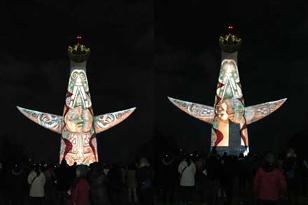 太陽の塔かっこいい~イルミナイト万博&ラーメンEXPO~ 日常 2014年12月25日 こんばんは、深田あさです。 今日の夜、某万博公園好きコンビに イルミナイト万博X`mas に誘ってもらいました。 まさかの顔ぶれで行ったんですが、まぁそれはええやろ。 プロジェクションマッピングっていうのかな? 行く前は「えー私そんなんはあんまり・・・」とか言ってたくせに。 見た途端。 「かっこいい!!!」 このシーンは多分見所。太陽の塔が中から壊れていく、みたいな映像です。 私がツボったのは、塔の裏側に似た顔のロボットと 太陽の塔型ロボットの対決!! 最後太陽の塔が波動拳みたいなん出してて笑った。 結構小さい子も多くて、これなら楽しめるだろなーって思いました。 誰かが「岡本太郎怒らへんかな・・・」って心配してましたけど(笑) 最後どっかでご飯食べて帰ろうかなーって言ってたんですが、 ラーメンEXPO2014が開催中だったので、ちょっと覗いてみることに。 覗くだけのつもりが食べる事に。 まぁそうなるわ。 みんなさっさと決めて並びに行く中、券を握り締めて決められない私。 濃ゆいの食べたかったのに、食べたい所のがどうも売り切れっぽく。 ベタにとんこつにしました。 「普通やな。」 って言われたけどさ・・・変なの食べないとダメ?おいしいかったよ・・・? でも・・・今改めて見るとチャーシューヘタみたい・・・ まぁお祭りって事で。(*´ェ`*) 明日から数日、行方不明になります。ではでは~! ★深田あさ★ [0回] http://asasasasa.blog.shinobi.jp/%E6%97%A5%E5%B8%B8/%E5%A4%AA%E9%99%BD%E3%81%AE%E5%A1%94%E3%81%8B%E3%81%A3%E3%81%93%E3%81%84%E3%81%84%EF%BD%9E%E3%82%A4%E3%83%AB%E3%83%9F%E3%83%8A%E3%82%A4%E3%83%88%E4%B8%87%E5%8D%9A%EF%BC%86%E3%83%A9%E3%83%BC%E3%83%A1%E3%83%B3expo%EF%BD%9E太陽の塔かっこいい~イルミナイト万博&ラーメンEXPO~