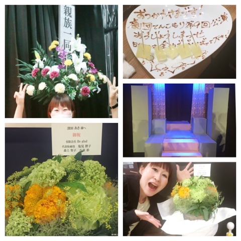 2週間前のきっかけの、半年前のはなし。 日常 2016年06月19日 こんにちは、深田あさです。 えっ?お芝居終わってもう2週間も経ってた?やや!?(わざとら) 舞台が終わった次の日から派手な風邪をひき、見事飛び散りました。 ギリギリ人に迷惑をかけずには済みましたが…気が緩んだかな。 さらに次の週、パソコンも飛び散りました(壊れた)。 色んなものが緩んでいたようだね。 ブログでのご報告は遅れましたが、 劇団てんこもり第9回公演「おうじょうしまっせ」 無事千秋楽を迎えました。 稽古中から本番まで、てんこもりの皆さんのおかげでずーーっと楽しかったです! 本当にありがとうございました。 Facebookにも書かせて頂きましたが、関わって下さった、全ての方に感謝です。 激励も、甘やかし(?)も、厳しさも全部ほんまにうれしい。 ※なんか花ばっかり映ってますが、左上は舞台で使った造花の供花がかっこよかったので、田口さんに撮って頂きました。 左下は、弊社ビー・グラッド、塩見智子社長、森上聖子ちゃん、小泉彩ちゃんに頂きました!あとであやぢに聞いたら「深田さんミドリすきだからー」って選んでくれたそうです~(*´ェ`*)うれしい~めっちゃうれしいありがと~~~!! 「てんこもりのお芝居に参加させて下さい!」と南条先生にお願いするまで、実は2年半くらい?かかりました。 南条ゼミの朗読会に出演するのは今年が3回目。 ずっと「またお芝居もやりたい…」と思いながらも私は迷い続けていました。まぁ、また機会があれば聞いてください(^o^) やっぱやりたいよーーー!!と思ったきっかけだけ書きたいです。 昨年の年末、南条先生と紅壱子さんの二人芝居「夜の取調室」を観てでした。 少しお手伝いをさせて頂き裏側を見ていたので、計算しつくされているのは知っていました。 でも、セリフじゃないみたい。こんなお芝居見たことない。 仲良しの二人が超ノリノリでごっこ遊びをしているような感覚というのでしょうか?セリフなのか素なのか分からない、「セリフ」。 「凄い!かっこいい!!あんなんやりたい!!!」 いや、もちろんわたしゃ出来てないんですけどね(真顔) 憧れる位は許してください( ゚∀゚) そんなこんなで迷いは吹き飛び、すぐお芝居をやらせて下さいとお願いしました。 「夜の取調室」、また再演されることがあれば是非是非見て頂きたいです!!そして共に役者さんへ憧れる思いを募らせましょーーーーう(^o^) 改めて、南条先生、本当にありがとうございます。 今回のお芝居に女子大生Aちゃんが観にきてくれてたんですが、 「てんこもりさん入りたいです!!」 って言っておりましたぞ。 てんこもりに、まさかの女子大生入り!!?ヒョー!! とか騒ぎつつ(*´ェ`*) これからも、心のスイッチが入ること、どんどんやっていきます。 「次回予告」 突然2頭身の子猫が来てしまった深田家! 先住ネコの2匹は… 疲労困憊!!? 背中に哀愁が・・・。 そしてこのダサネコイラストの謎とは!!? 次回、『抑制されし猫欲を放出する』。 一部の方、ご期待ください! ★深田あさ★ [4回] http://asasasasa.blog.shinobi.jp/%E6%97%A5%E5%B8%B8/2%E9%80%B1%E9%96%93%E5%89%8D%E3%81%AE%E3%81%8D%E3%81%A3%E3%81%8B%E3%81%91%E3%81%AE%E3%80%81%E5%8D%8A%E5%B9%B4%E5%89%8D%E3%81%AE%E3%81%AF%E3%81%AA%E3%81%97%E3%80%822週間前のきっかけの、半年前のはなし。