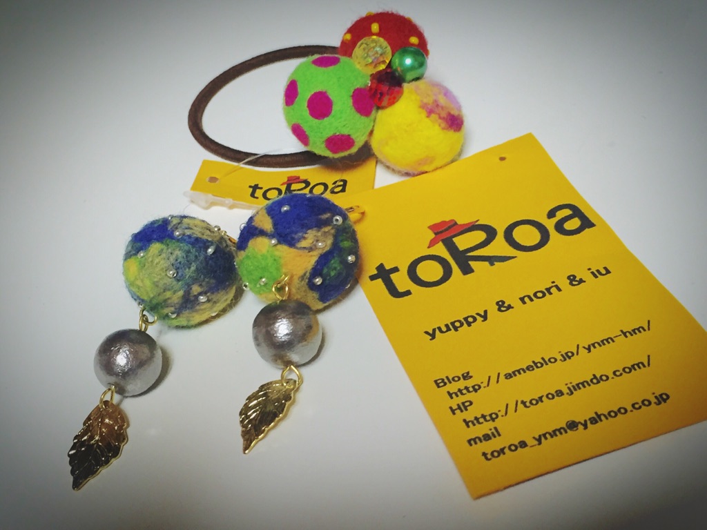 カバンは初日の30分で8割売れてしまったそうで、私のtoRoaデビューはピアスとヘアアクセとなりました。派手かわ。元気をもらえそうなポップな色!