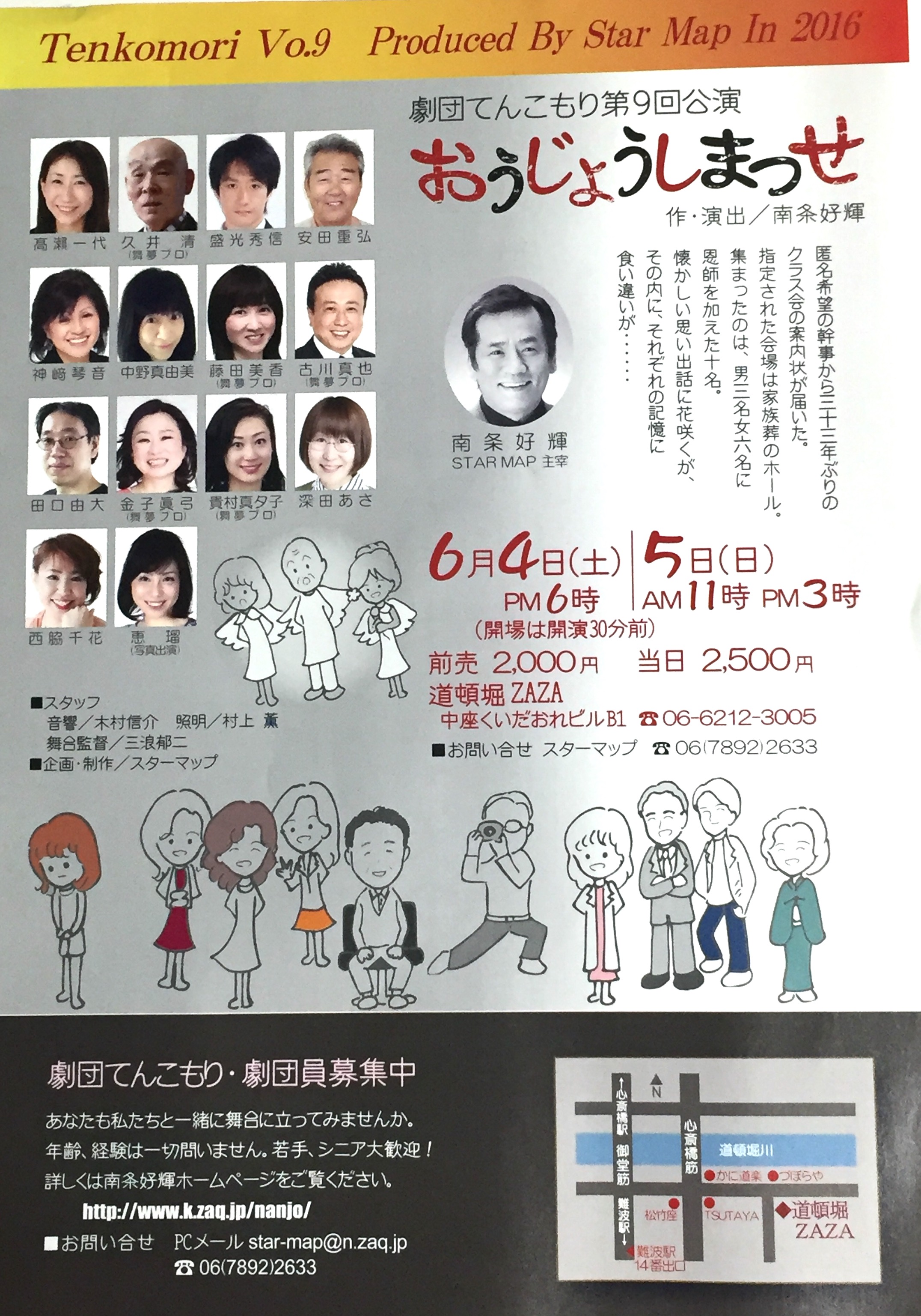 で、実は南条先生演出の「劇団てんこもり」次回公演に出演させて頂きます。
