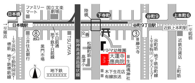 ・地下鉄谷町線「谷町九丁目駅」/近鉄線「近鉄上本町駅」3番出口より西へ徒歩8分